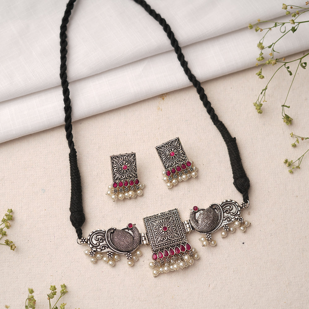 Oormika- Colorful oxidised Silver neckpiece set