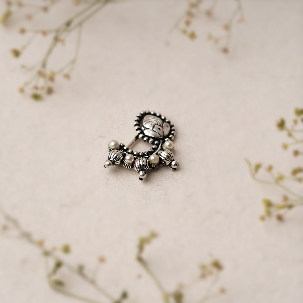 DwiMayura- Silver Brass Oxidised dangler earrings
