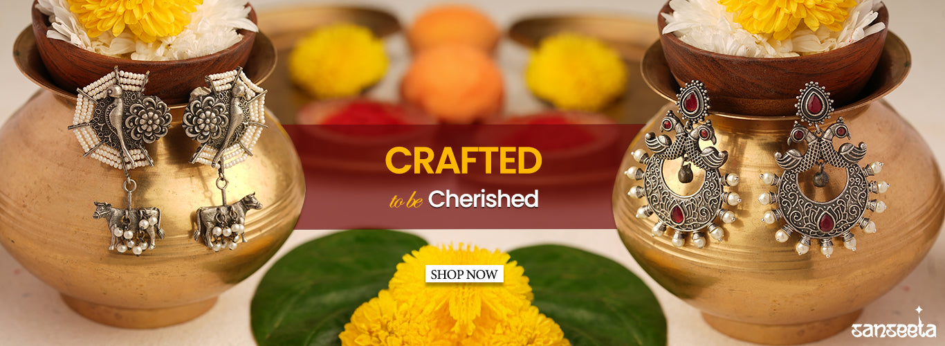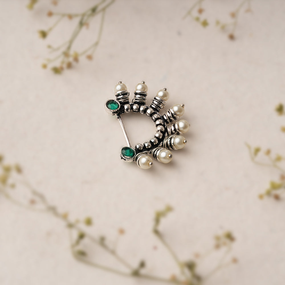 Chamkeeli- Silver Brass Pearl jhumka earrings