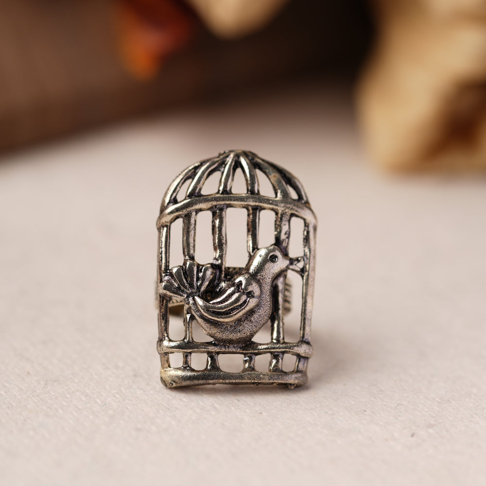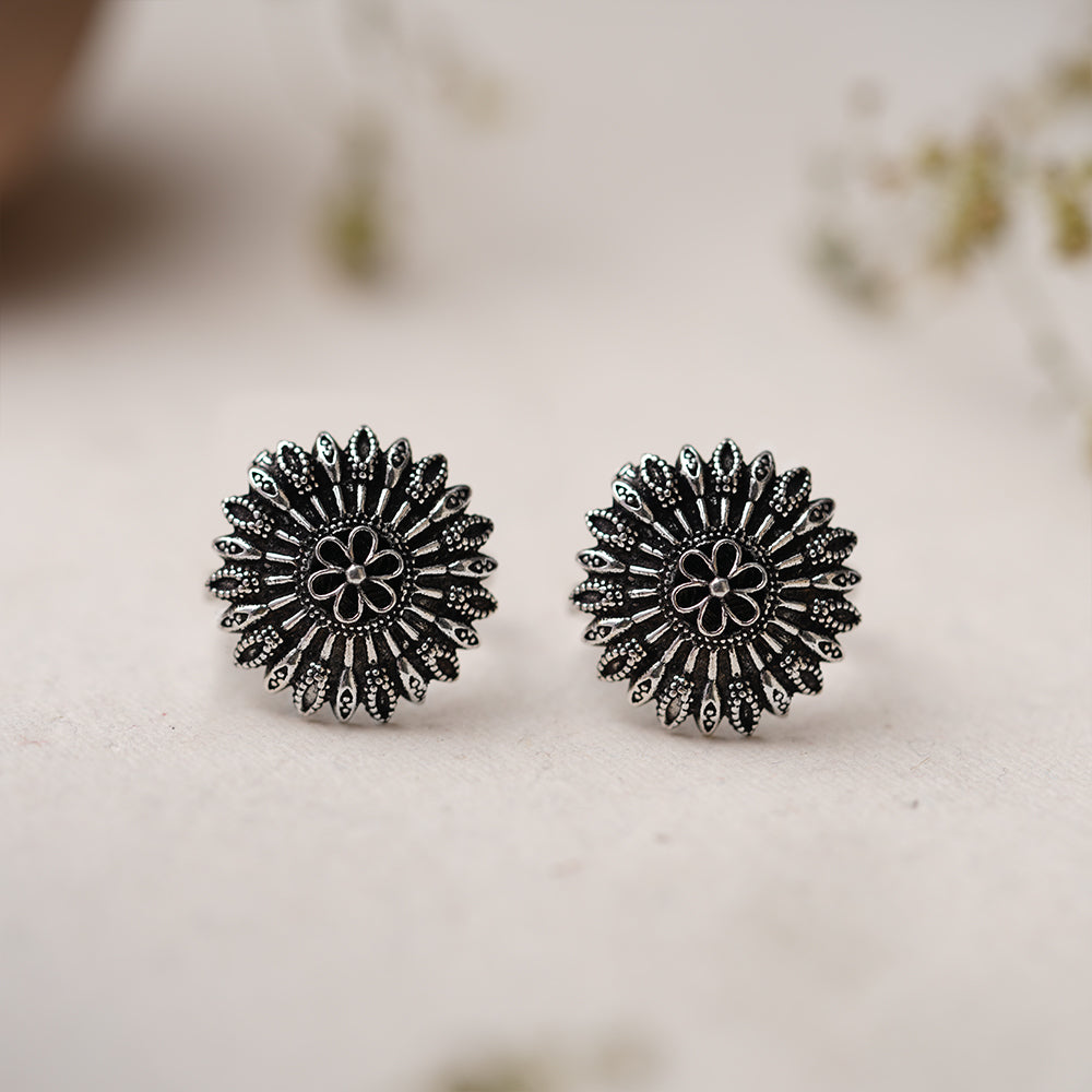 MorPushp- Silver Brass Oxidised Jhumka earrings