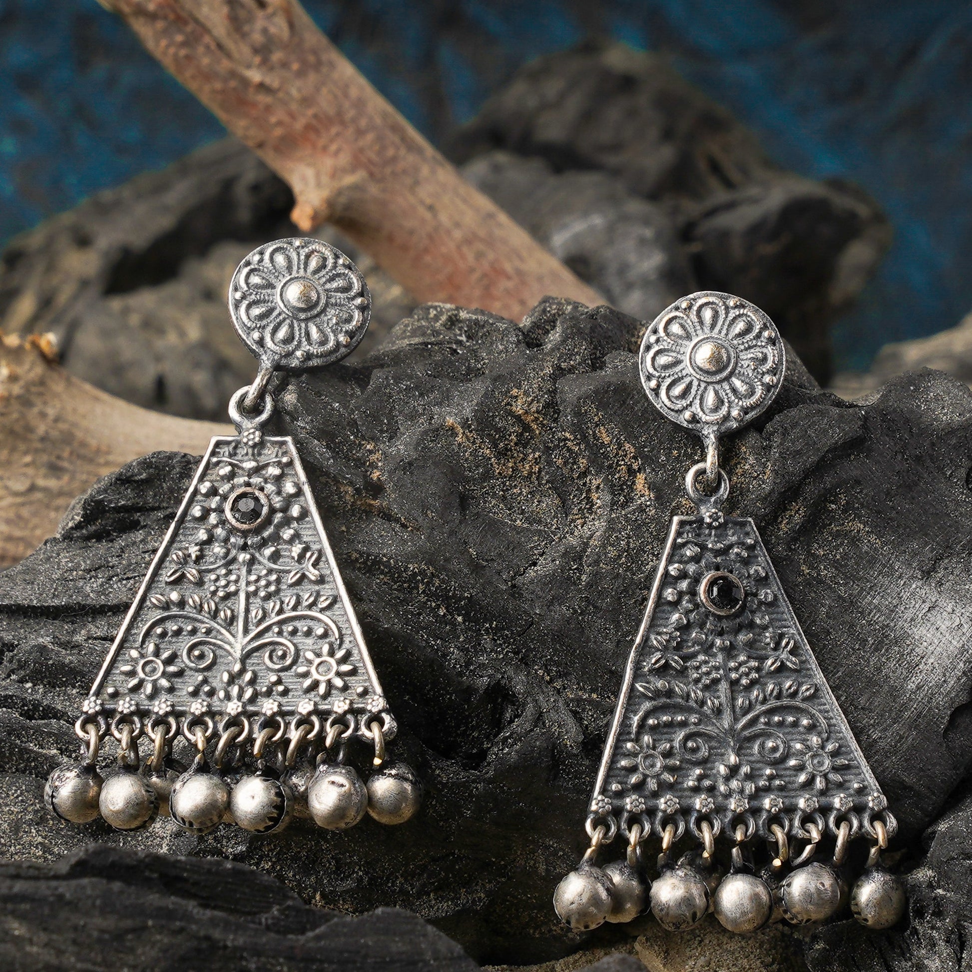 GunghrooPatra- Silver Brass Oxidised dangler earrings