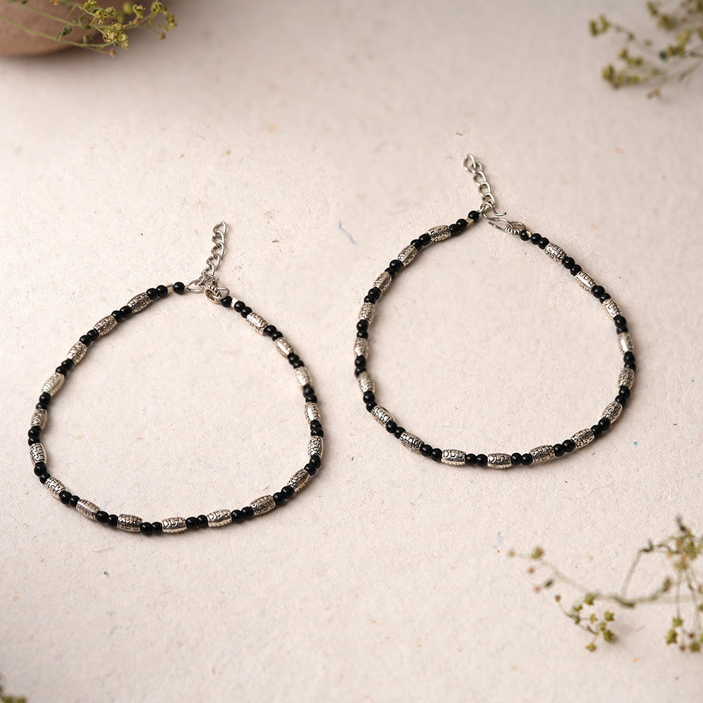 Add a playful touch to your ensemble with our black beads studded charm payal, perfect for both everyday wear and special occasions.