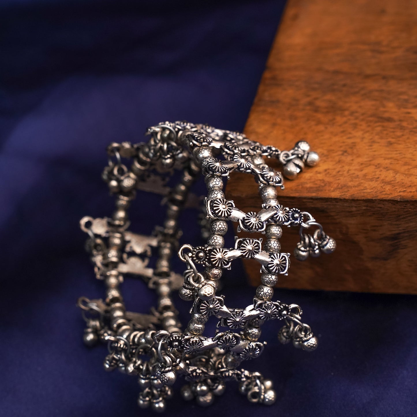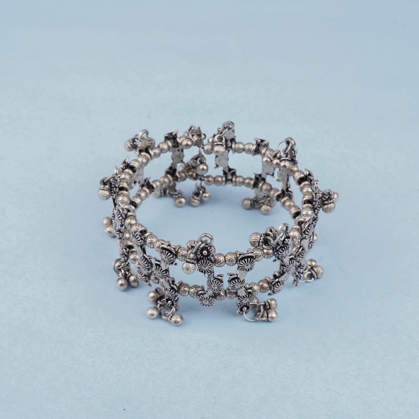 Elevate your traditional jewelry collection with this exquisite Multistrand Brass Silver Polished Hasli Set. This set includes a choker-style Hasli necklace, matching earrings, an adjustable ring, and a classic Kada bracelet. Each piece is crafted from high-quality brass and polished with a lustrous silver finish, adding a touch of elegance and sophistication. The intricate design and multiple strands of the Hasli necklace make it a standout piece, perfect for special occasions and festive events.