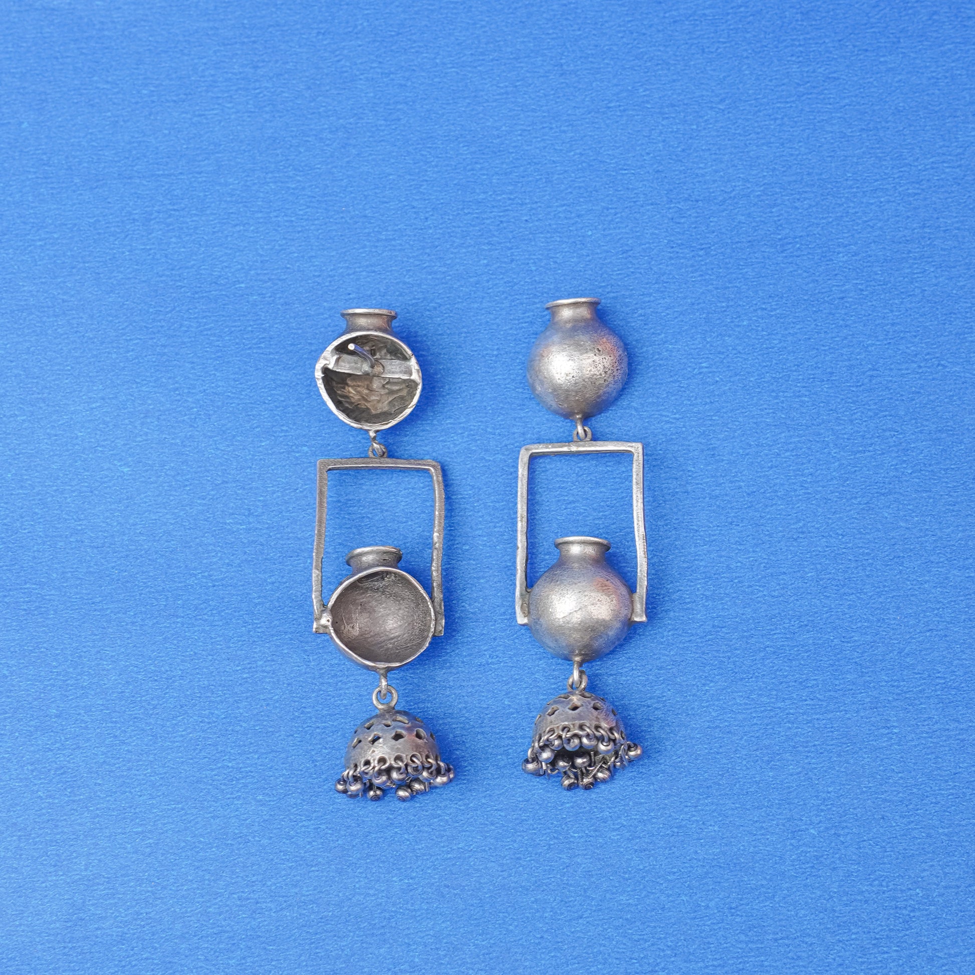 Mridghat- Silver Brass Oxidised dangler Earrings