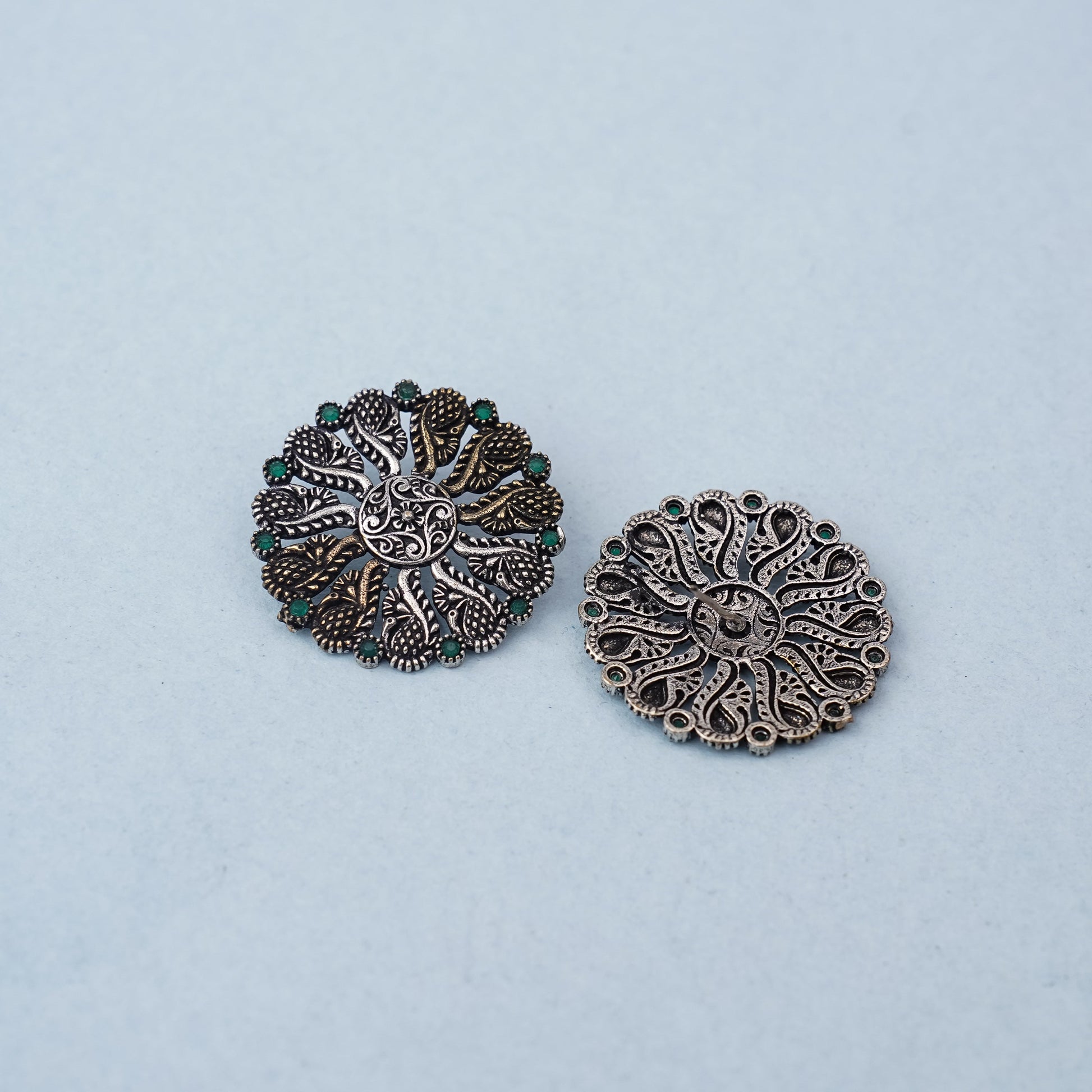 Gulshan- Silver Brass Oxidised Stud Earrings