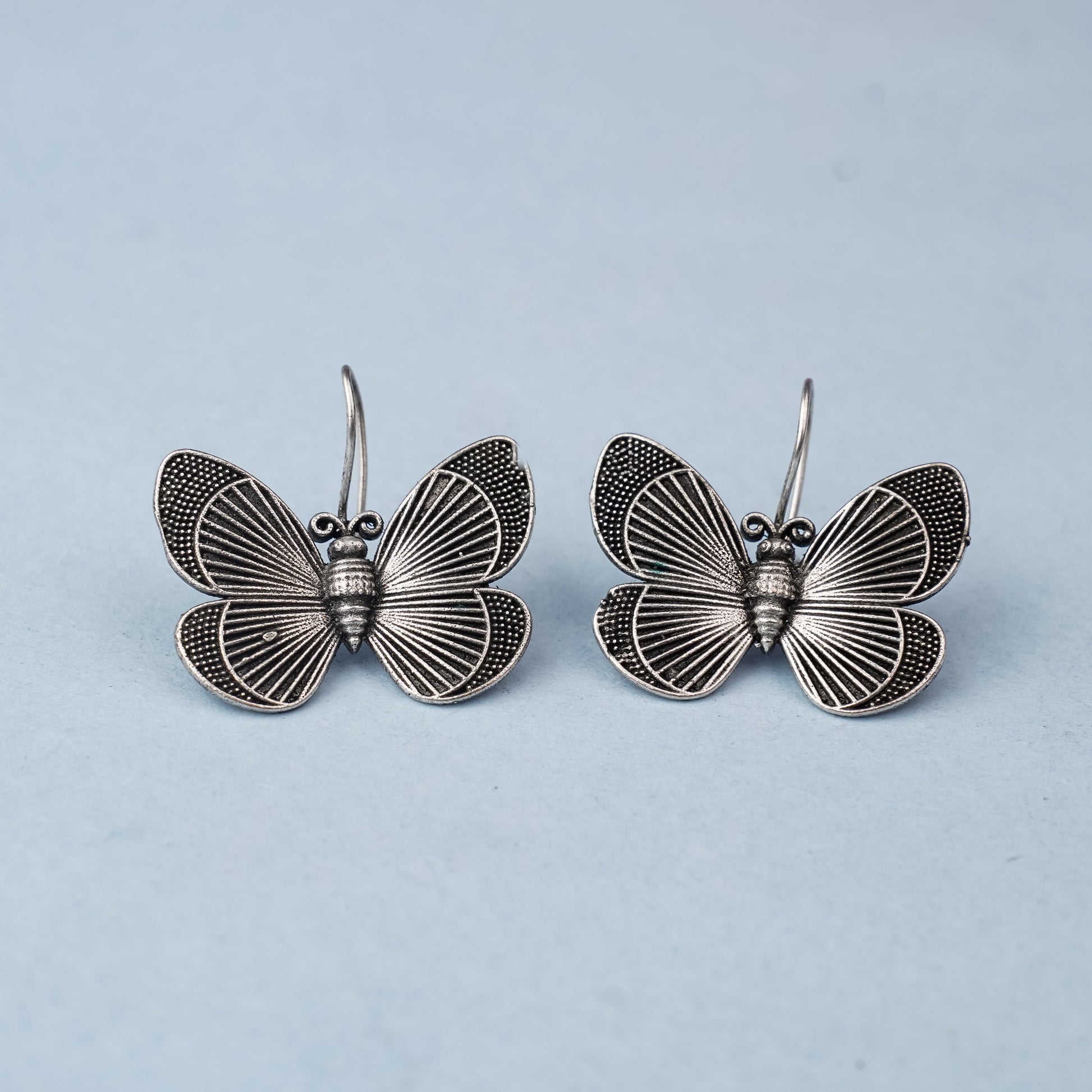 Pankhuri- Silver Brass Oxidised Stud Earrings
