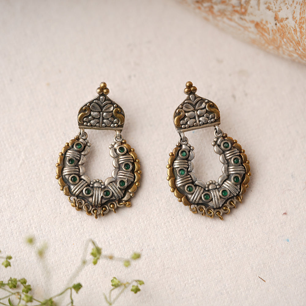 Shaam-Savera- Silver Brass Oxidised dangler earrings