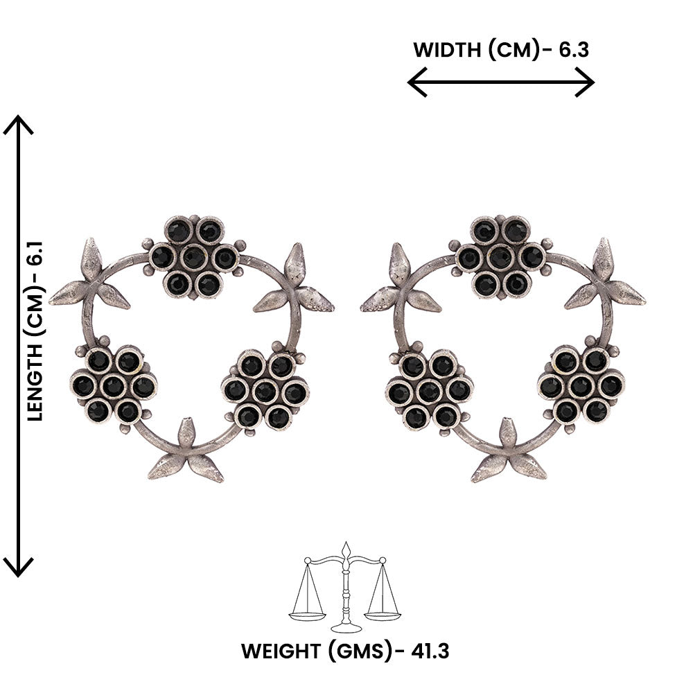 PushpMukuta- Silver Brass Oxidised dangler earrings