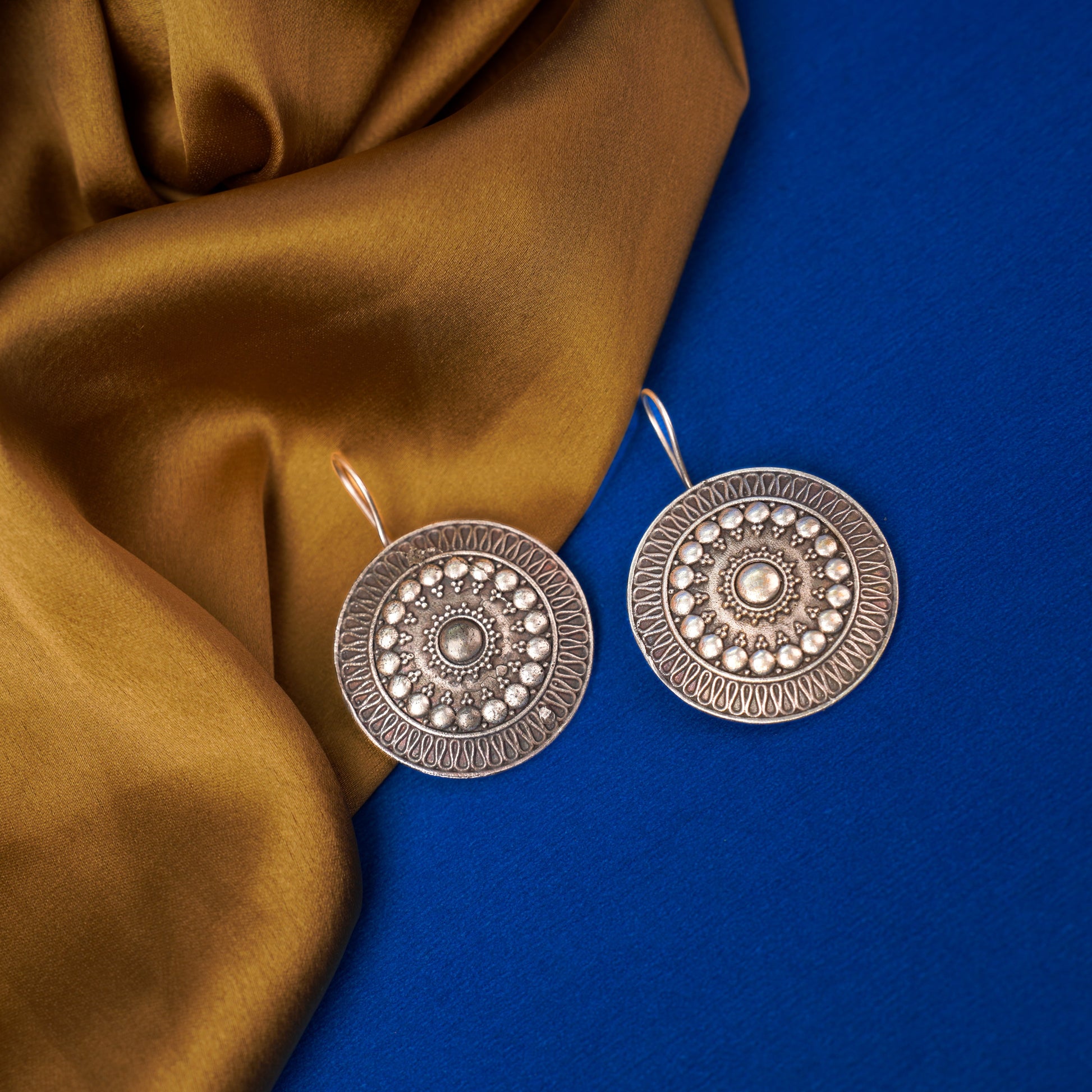 ChandChakra- Silver Brass Oxidised stud earrings
