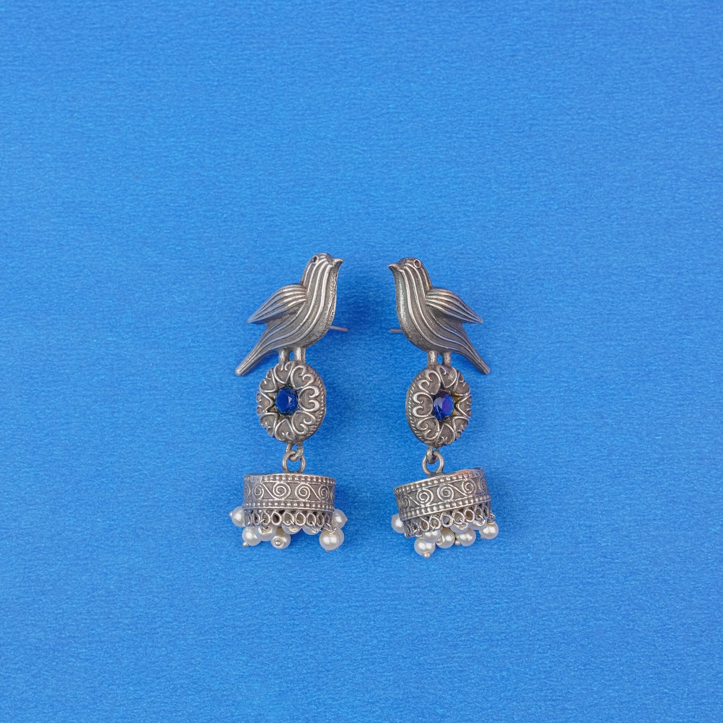 Chakori- Silver Brass Oxidised Jhumka Earrings( Blue)