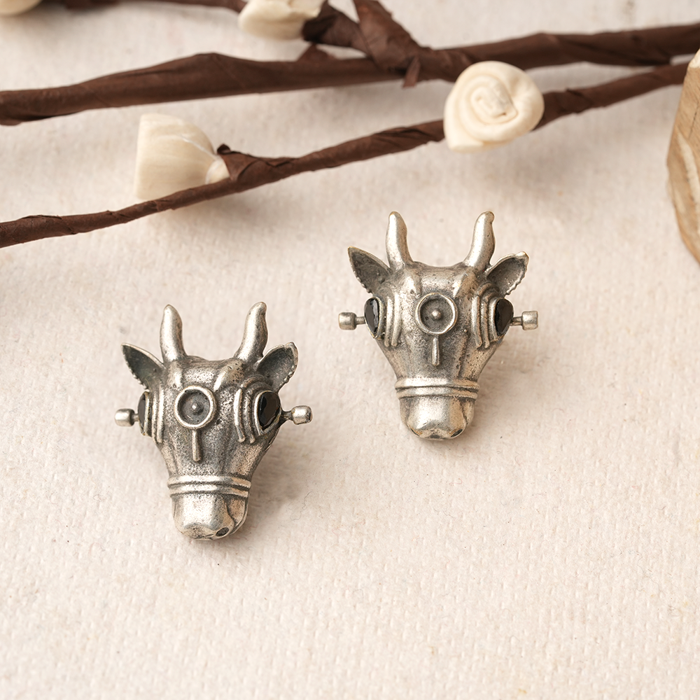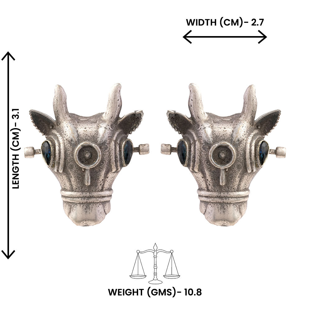 Nandi- Silver oxidised Stone-Studded stud earrings(Black)