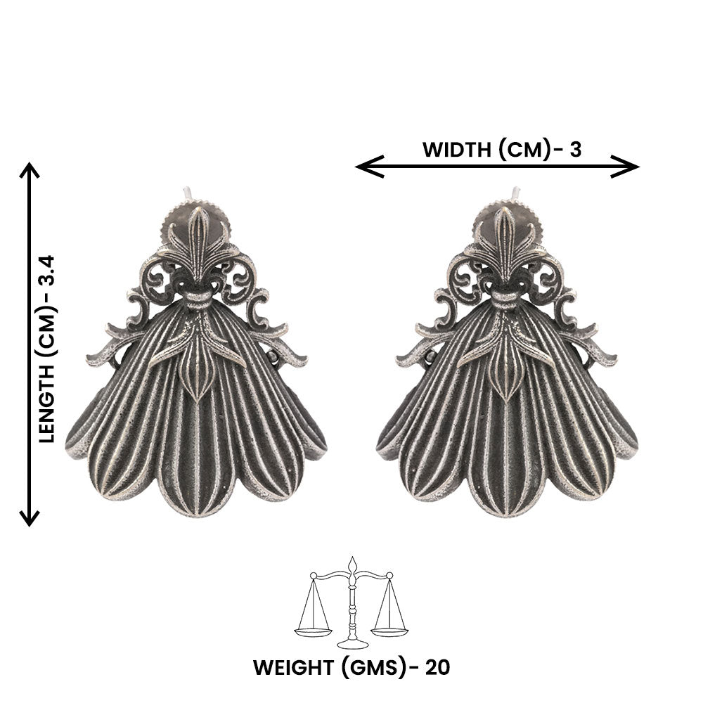 Shyamra blends antique silver tones with bold oxidised detailing, bringing depth and character to your look. Crafted in brass, these statement studs pair beautifully with ethnic and Indo-western outfits, adding subtle drama and handcrafted charm.