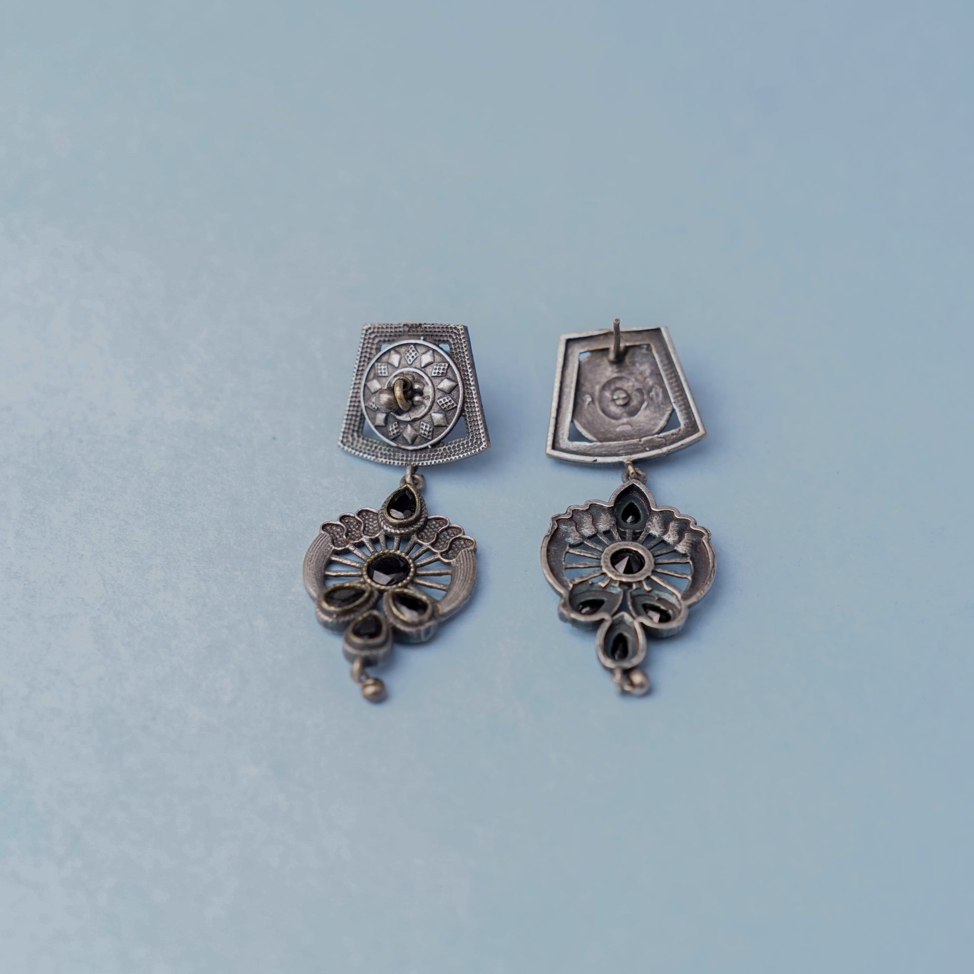 Gulbahar-Silver Brass Oxidised dangler earrings(Black)