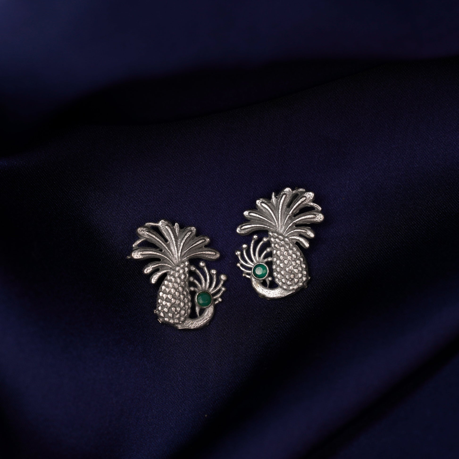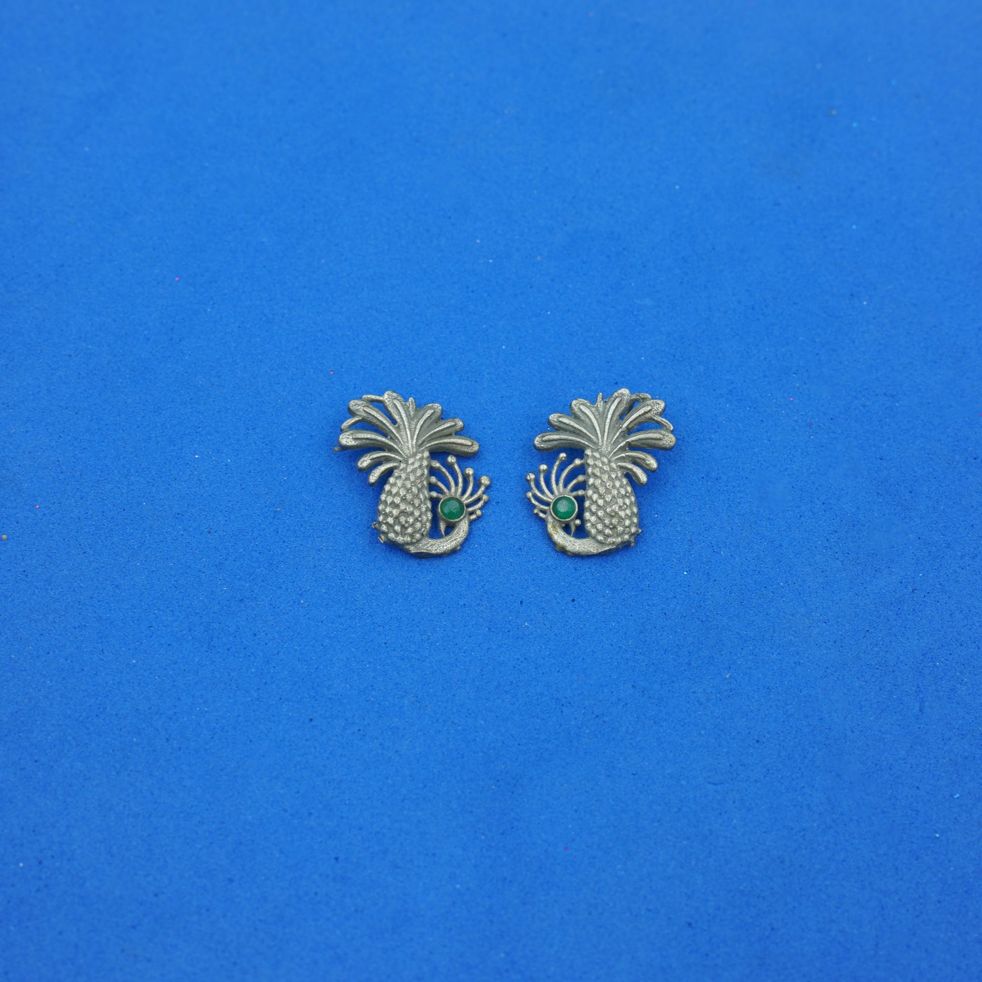 Ananasika- Silver Brass Stone Studded Stud Earrings(Black)