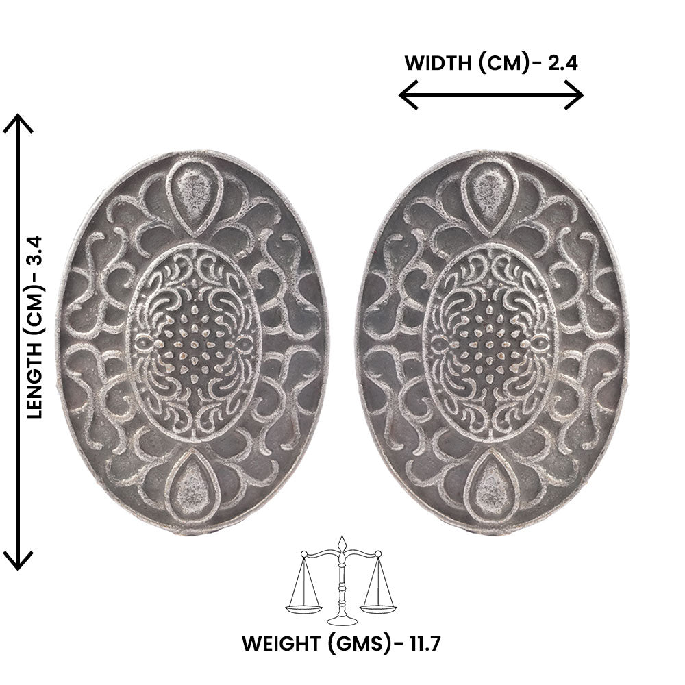 Chandrika- Silver Brass Oxidised Stud Earrings