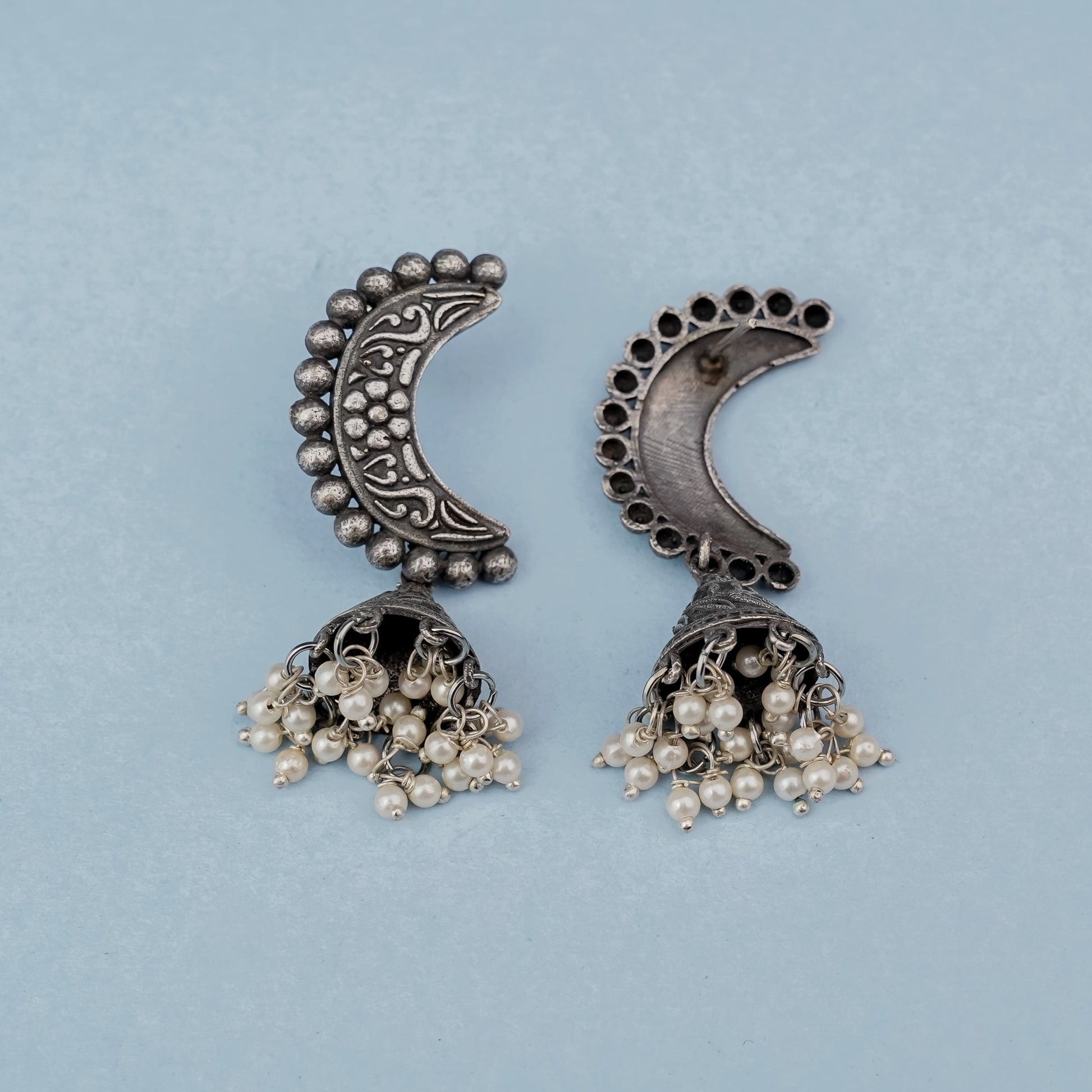 ArdhChandra- Silver Brass oxidised dangler earrings