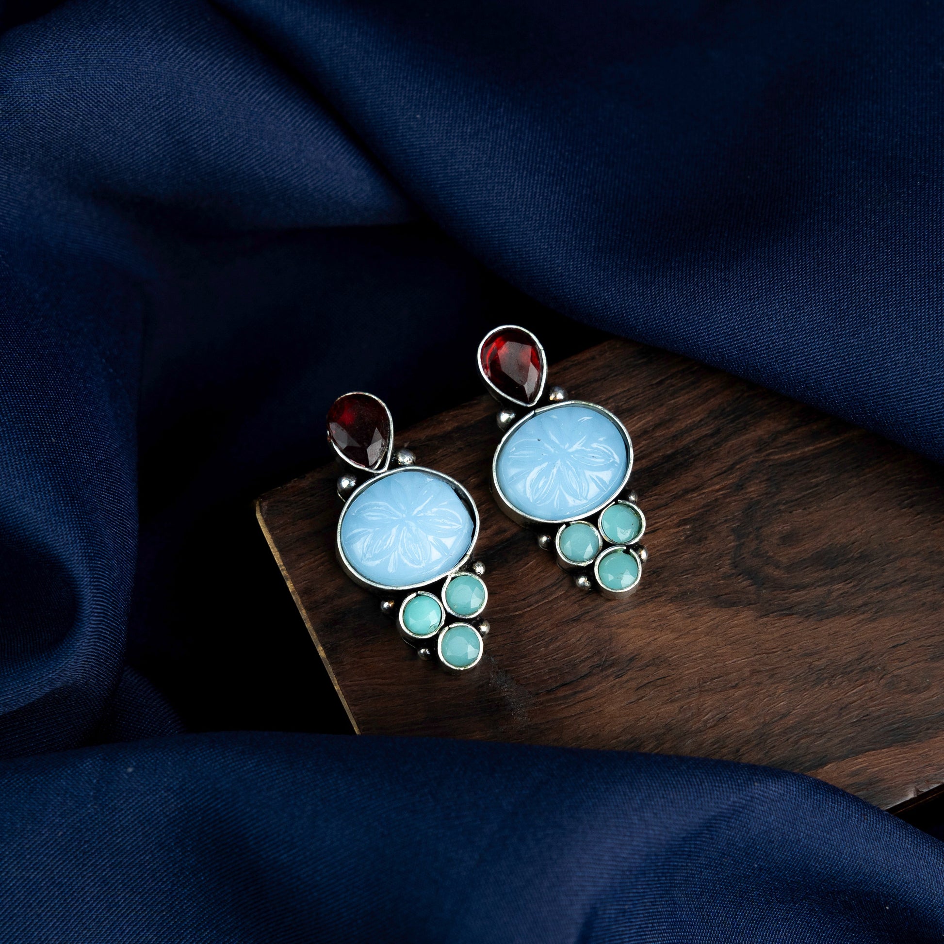 ShilpaRatna- Brass Stone-Studded stud earrings(Sky Blue)