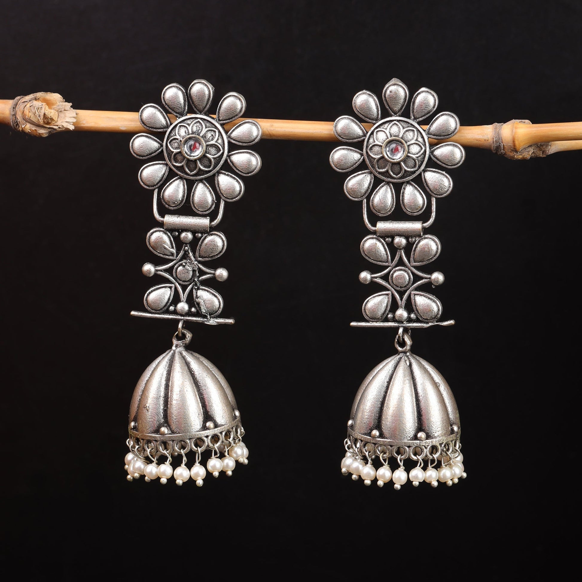 RajRatna- Silver Brass Oxidised Jhumka earrings