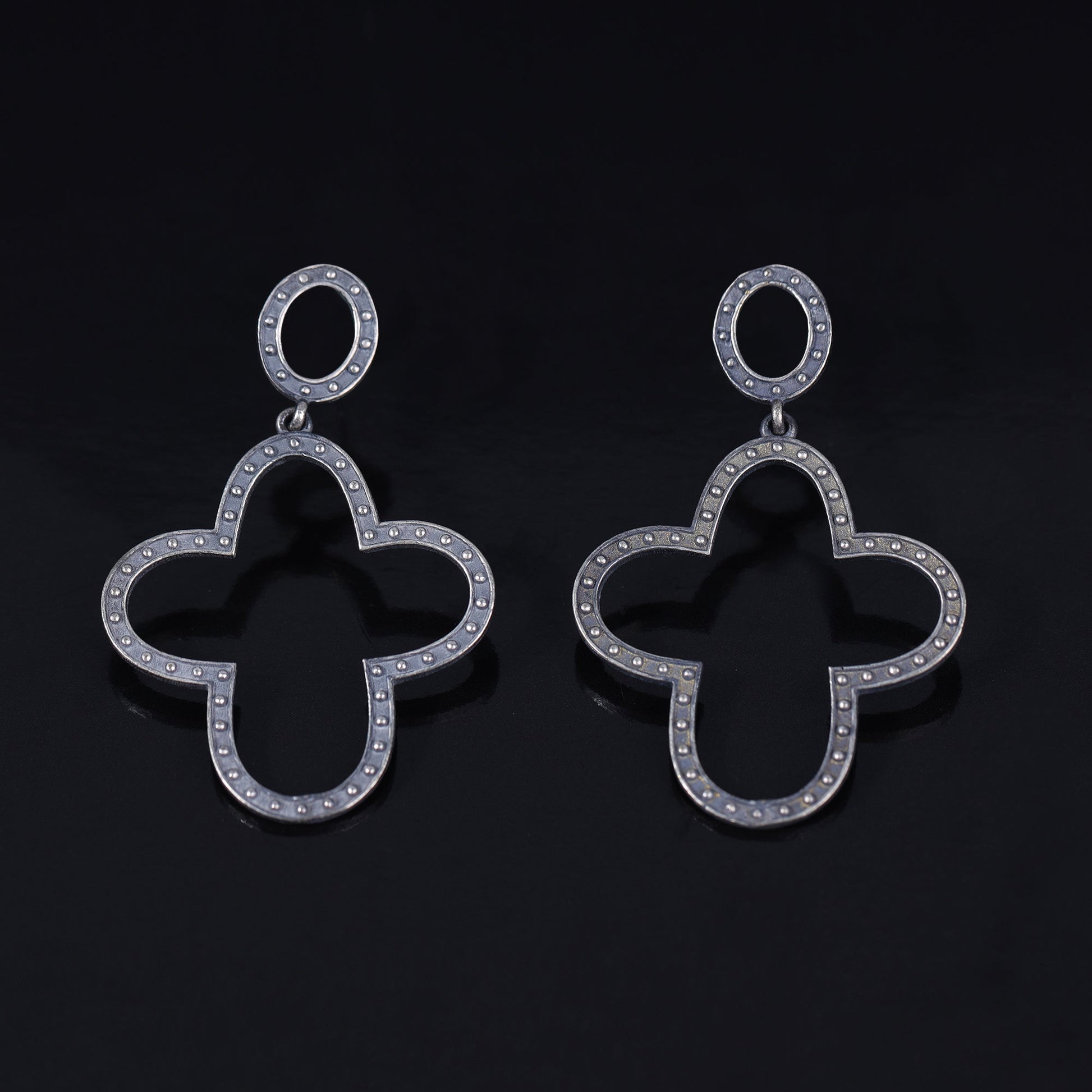 Celebrate craftsmanship with Pranalika, a graceful pair of oxidised silver dangler earrings inspired by traditional motifs. The intricate detailing and elegant drop silhouette make them a standout accessory—perfect for ethnic wear, festive outfits or elevated everyday styling.