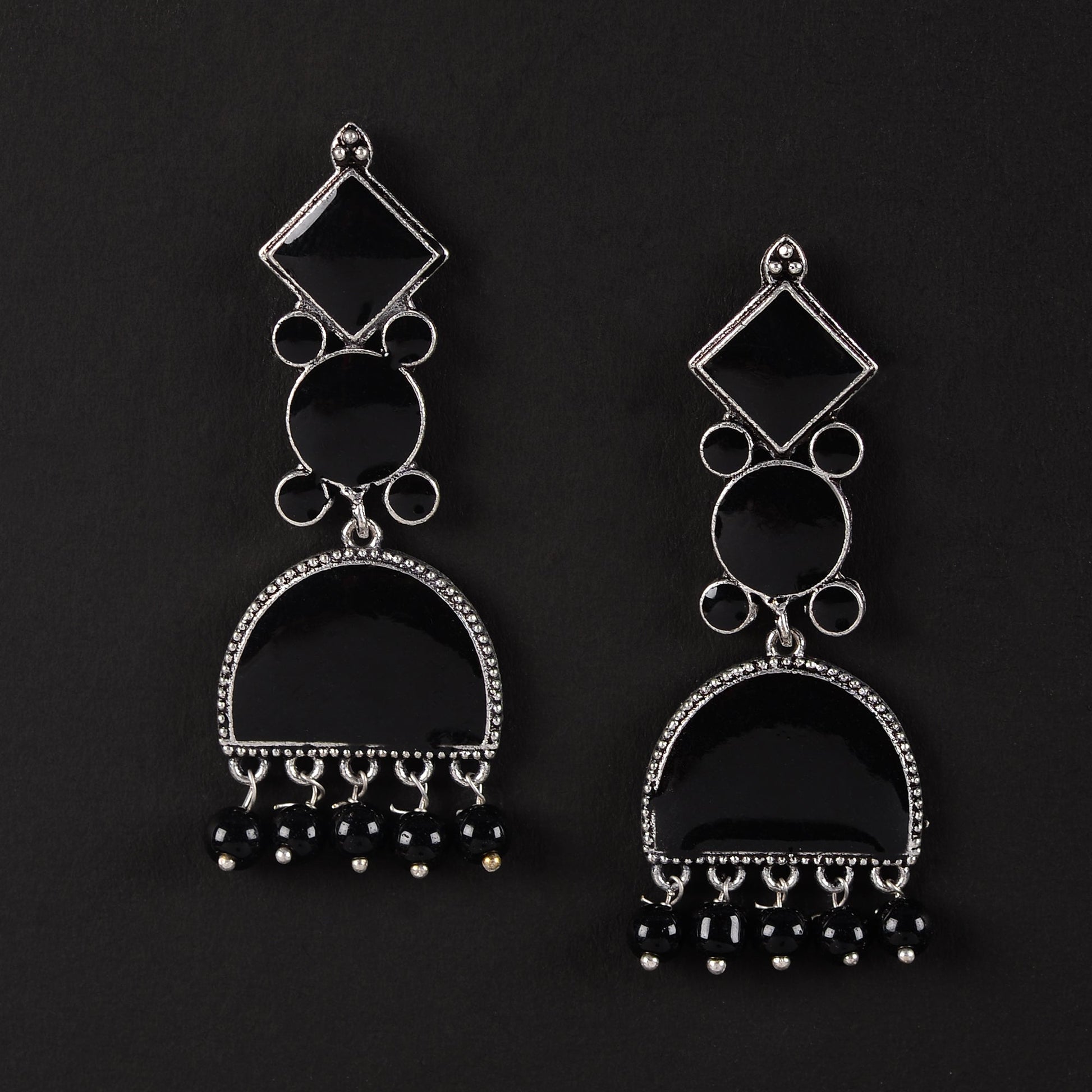 Aakar- Silver Brass stone studded dangler earrungs (Black)