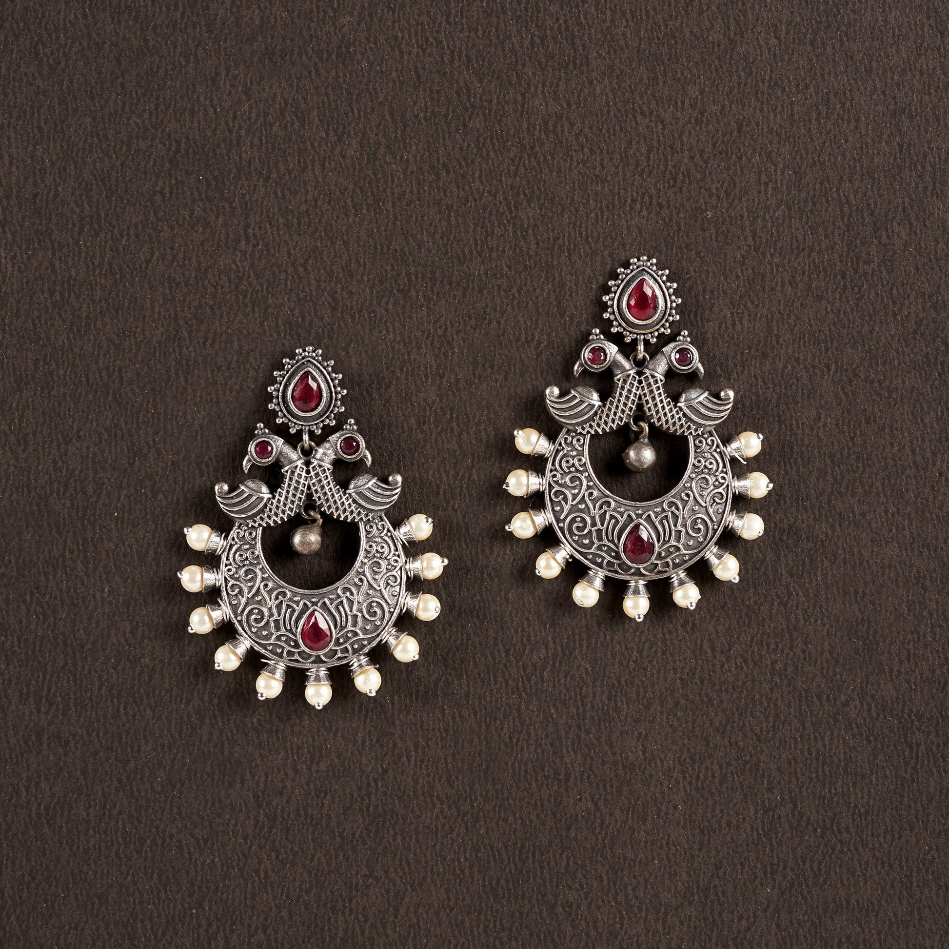 DwiMayura- Silver Brass Oxidised dangler earrings