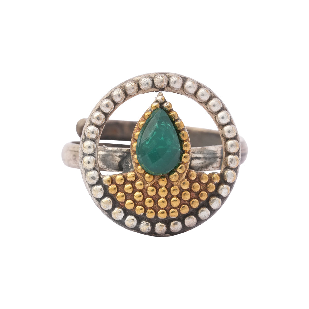 A handcrafted silver toned brass adjustable ring, perfect for any occasion. Its artisanal design adds a unique touch to your jewelry collection. The adjustable band ensures a comfortable fit, making it a versatile and stylish accessory.