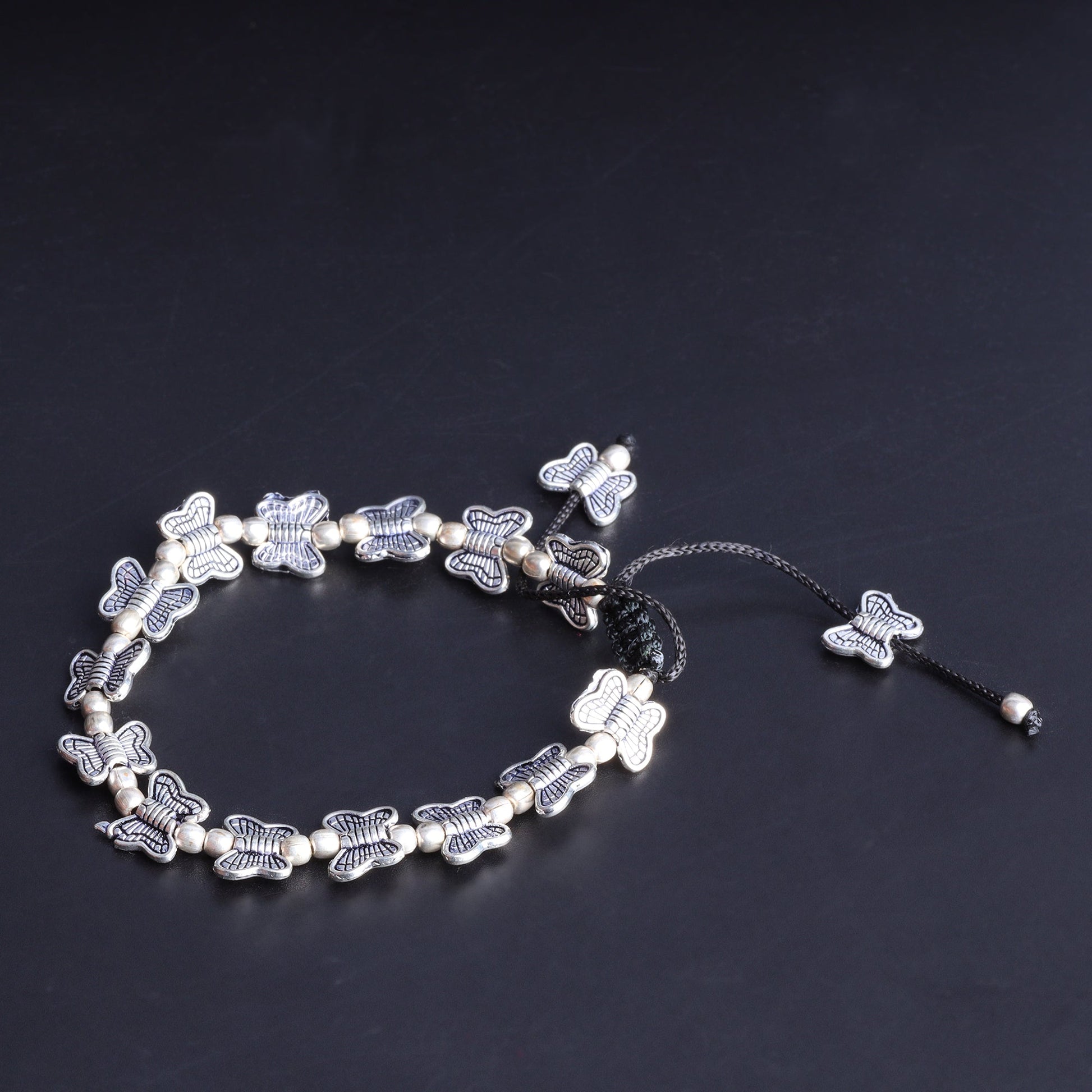 Celebrate delicate elegance with the RajTitli Bracelet. Designed in oxidised silver–toned brass and adorned with subtle beads, this bracelet features a graceful butterfly motif that symbolises beauty and freedom. Lightweight, adjustable, and effortless to style, it adds a charming touch to everyday outfits, festive looks, and ethnic ensembles.