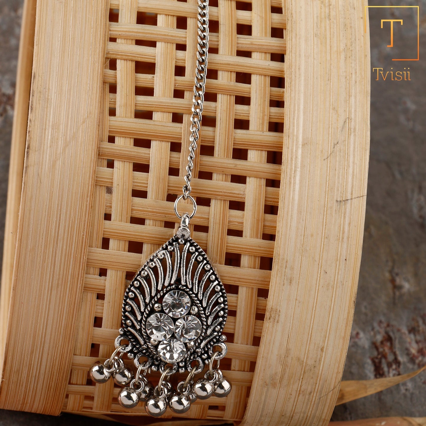Adorn your forehead with our exquisite oxidised mangtikka. Featuring intricate detailing and a vintage finish, it adds a touch of traditional elegance to your look, perfect for weddings and cultural celebrations.