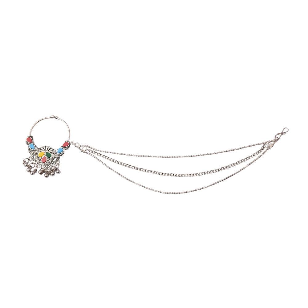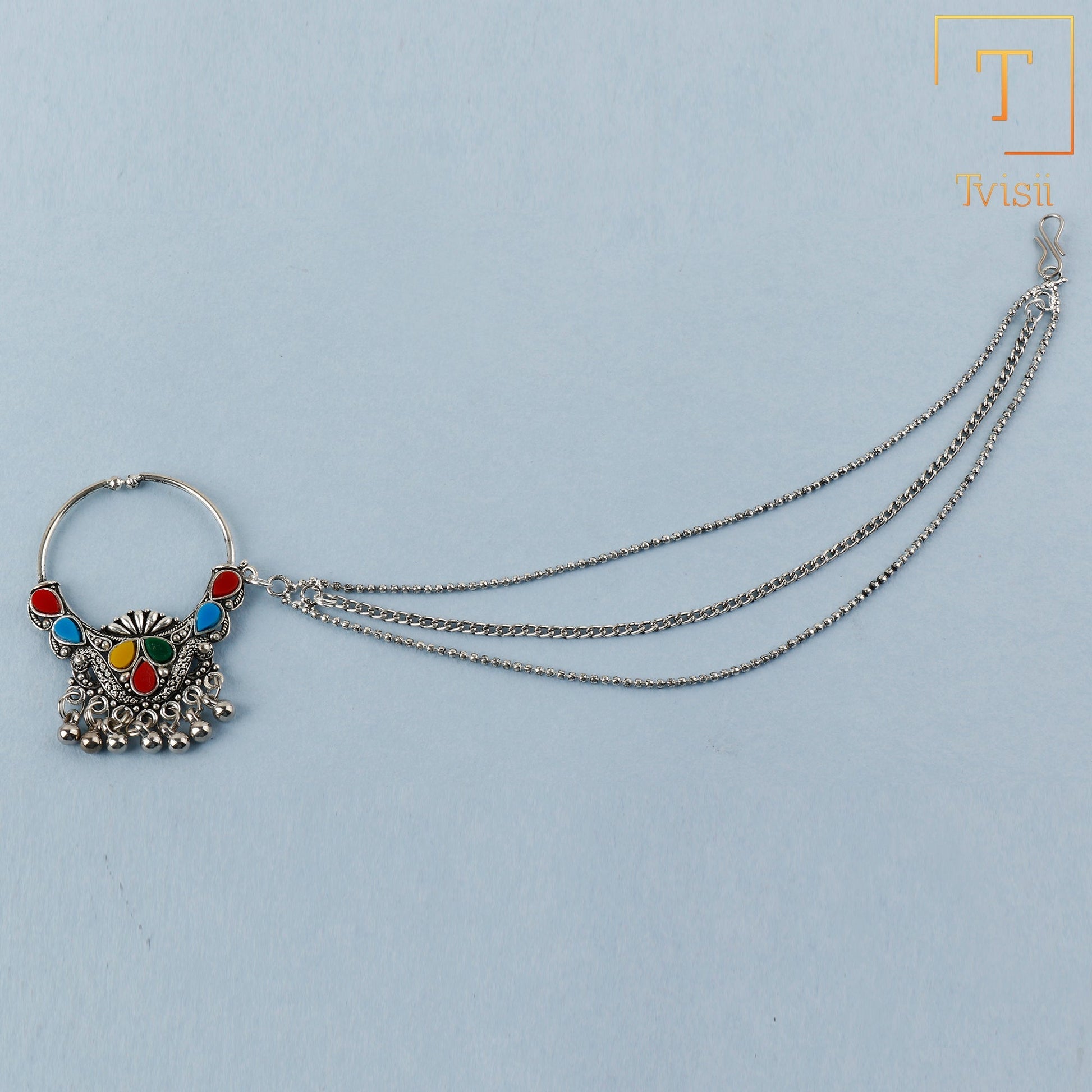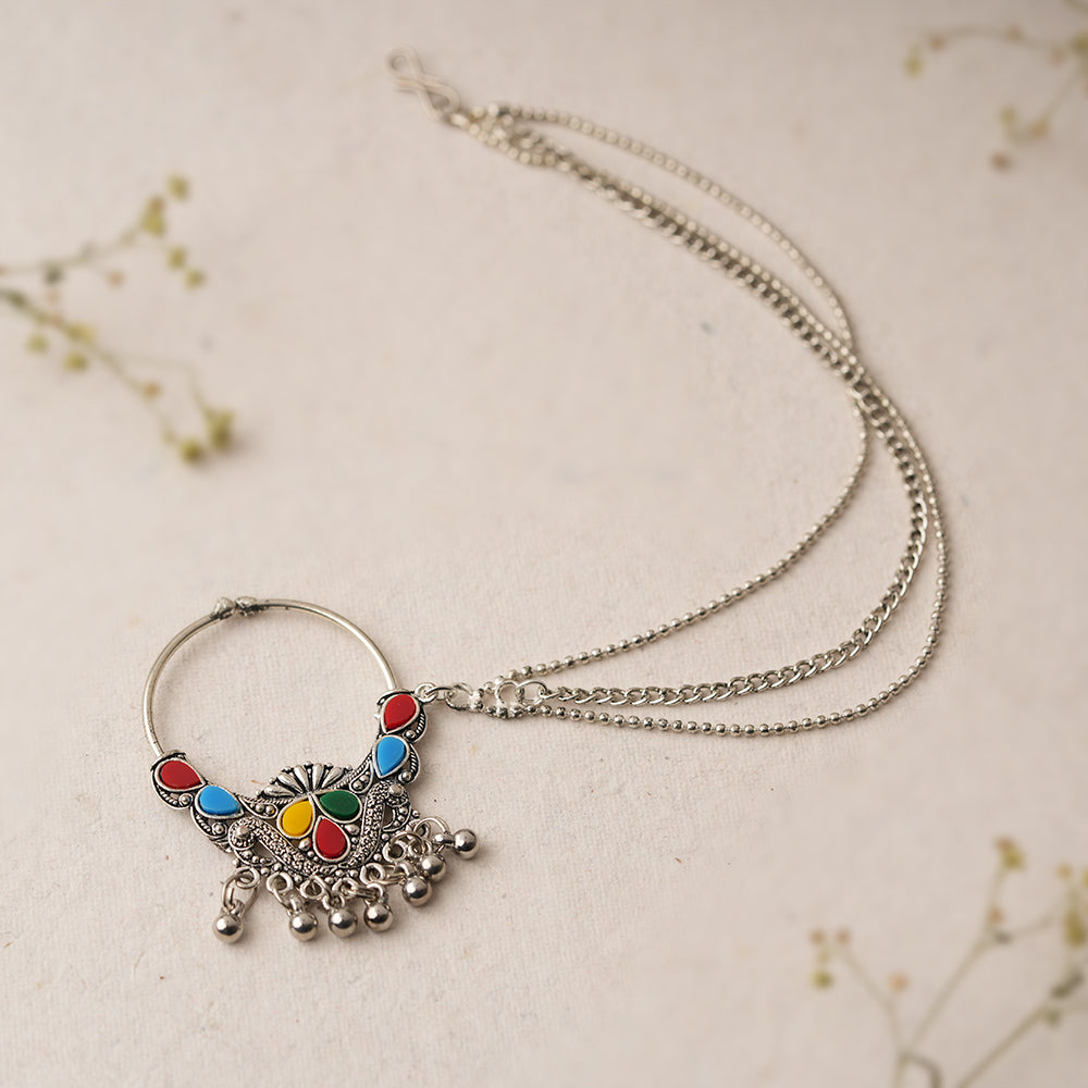 Elevate your ethnic charm with our oxidised nath, designed for traditional elegance. Ideal for complementing bridal attire or cultural celebrations with its intricate craftsmanship.