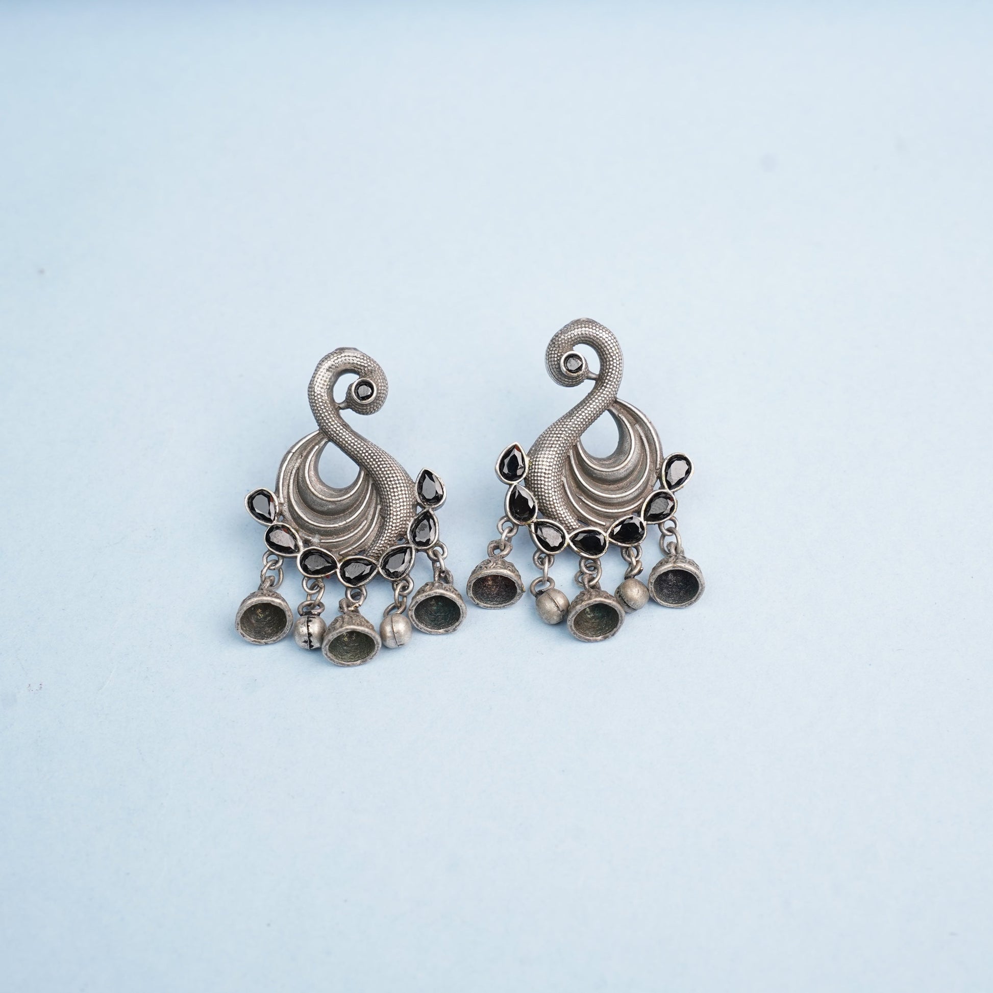 Hansika- Silver Brass ghunghroo dangler earrings(Black)